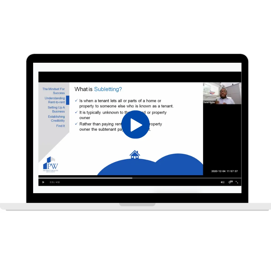 1. How to find your first rent to rent.2. How to Secure your rent to rent deals. 3. How to Prepare your property. 4. How to find Tenants for your property. 5. How to Manage your properties and treat it as a business.
